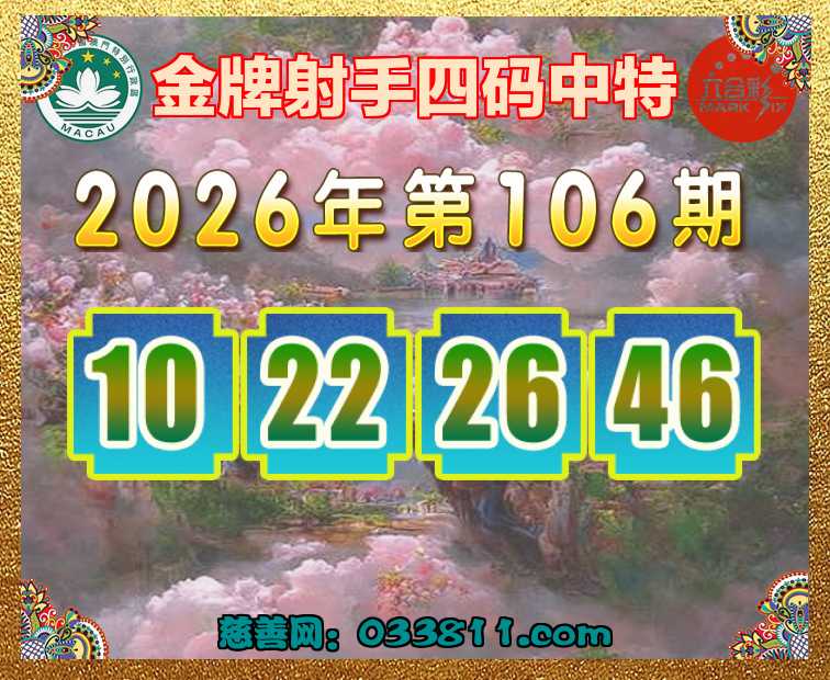 106期:〖金牌射手〗 ✂️四码中特✂️【10.22.26.46】开:22