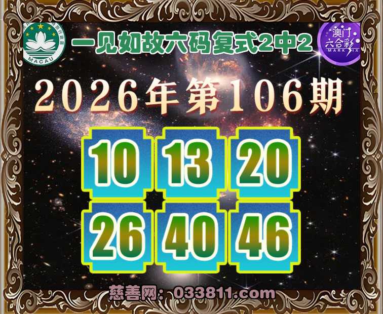 主题: 107期:澳门慈善网《一见如故》▲《六码复式2中2》▲审核通过√